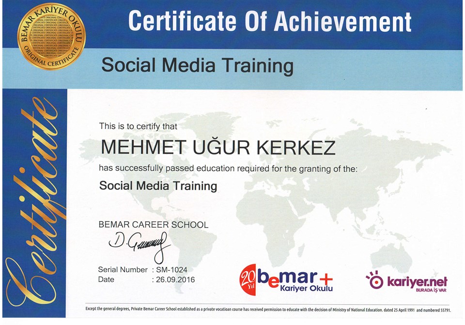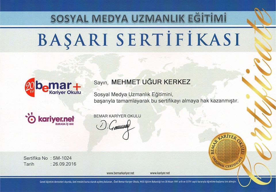 EĞİTİM VE SERTİFİKA BİLGİLERİM